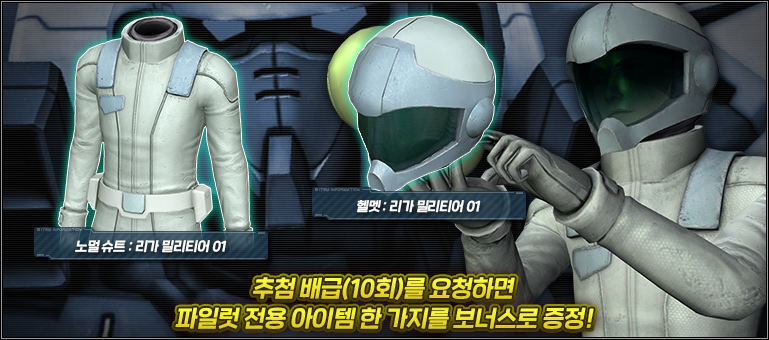 - ■추첨 배급(10회)를 요청하면 파일럿 전용 아이템을 보너스로 증정!
