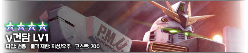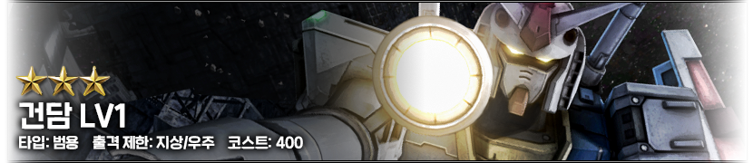 - 로그인 3일째: 건담 LV1 (범용, 지상/우주 양용, 코스트 400)