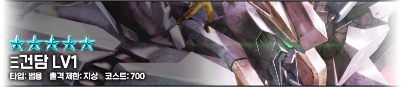 - 로그인 1일째: Ξ건담 LV1 (범용, 지상 전용, 코스트 700)