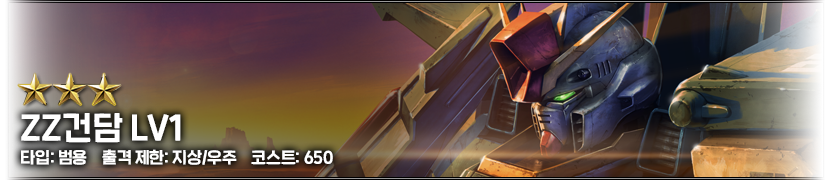 - 로그인 5일째: ZZ건담 LV1 (범용, 지상/우주 양용, 코스트 650)