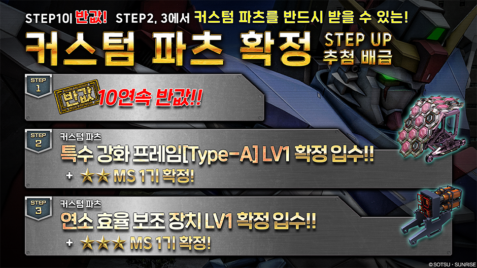 - ・STEP1(15토큰):엄선한 강기체 4기 중에서 1기 확정 & 게다가 10연속 반값!
