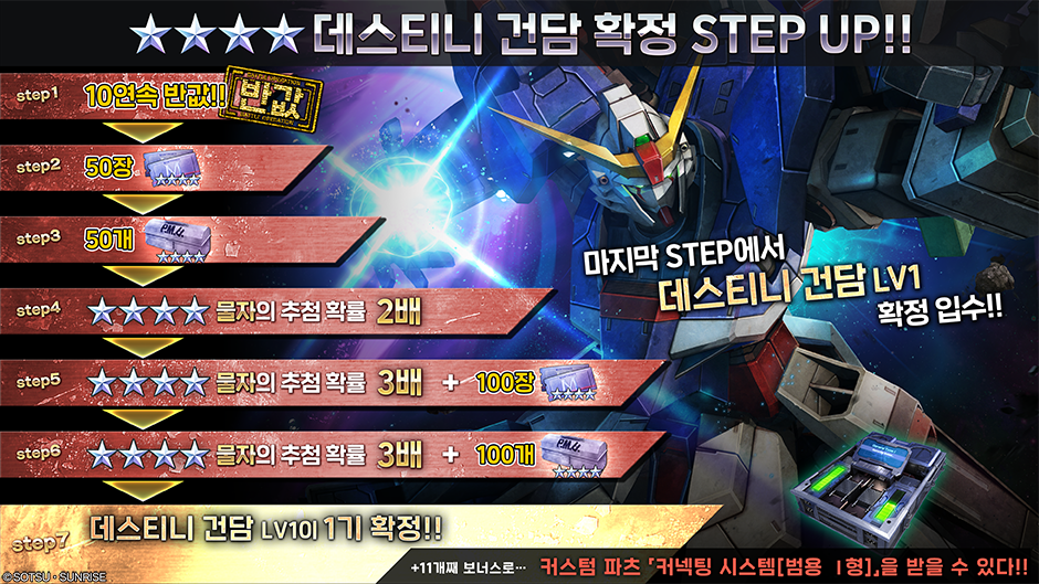- ・STEP3(30토큰):더더욱 엄선한 강기체 4기 중에서 1기 확정! 「수퍼브 제간 LV1」 1기 확정!