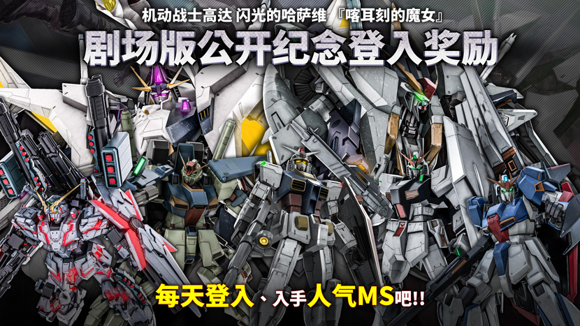 - 活动期间内,只要登入激战任务2,即可获得「Ξ高达LV1」、「佩涅罗佩LV1」等人气 MS 作为赠礼!