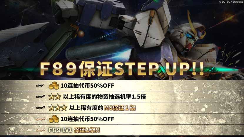 - ・STEP5(代币30枚):F89 LV1保证1架!