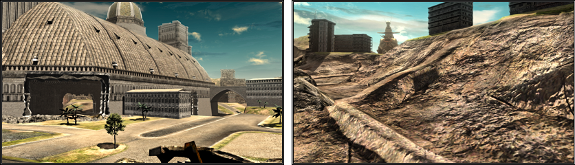 - 全局由巨大的辙形成,中央配置着残留的建筑物。