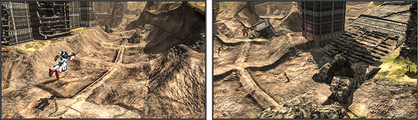 设计概念源自机动战士V高达中登场的摩托车型战舰「阿特拉斯迪亚」所破坏的都市区。 - <MAP全局>