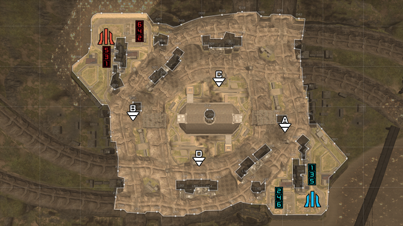 - 中央建筑可进入内部,同时也是攻入敌阵的最短途径。