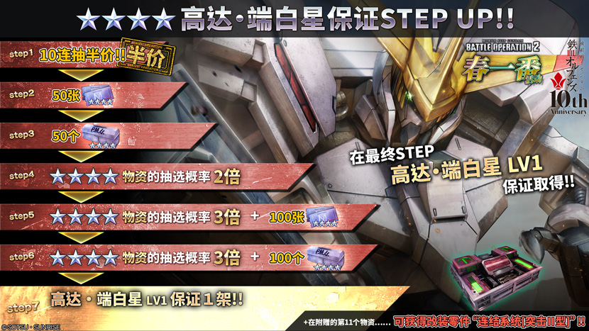 - ・STEP7(代币30枚):「高达・端白星 LV1」保证1架!!