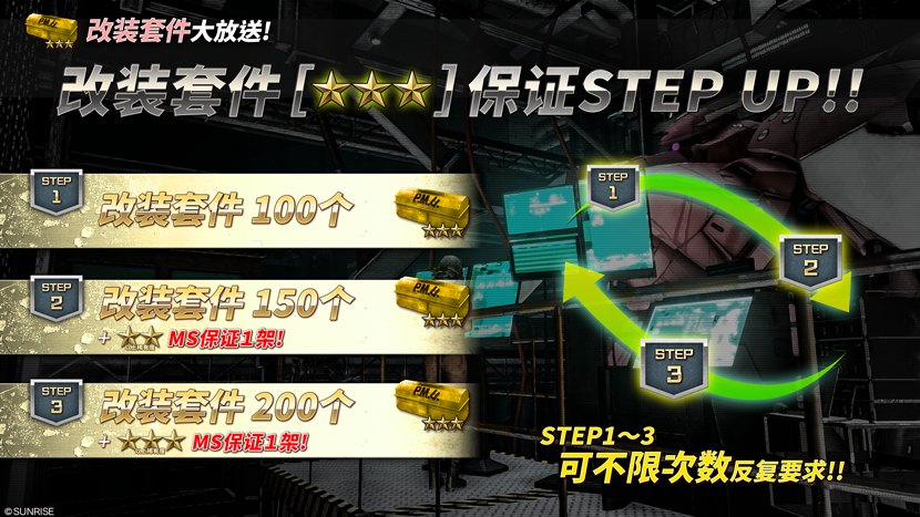 - ・STEP3(代币30枚):特赠改装套件[★★★] 200个!+★★★以上MS保证1架!