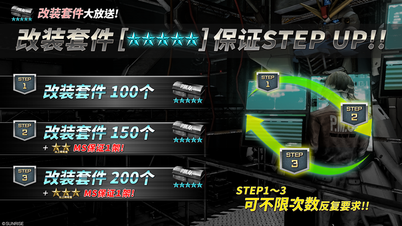 - ・STEP3(代币30枚):特赠改装套件[★★★★★] 200个!+★★★以上MS保证1架!