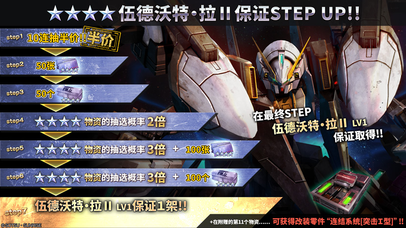 每当玩家完成一次10连抽选配给,将会进入下一阶段:STEP1→STEP2→STEP3→STEP4→STEP5→STEP6→STEP7。