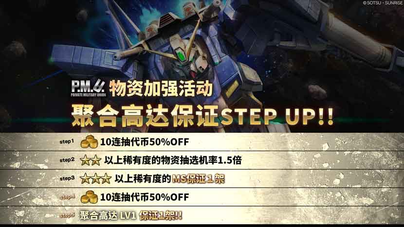 - ・STEP5(代币30枚):聚合高达LV1保证1架!