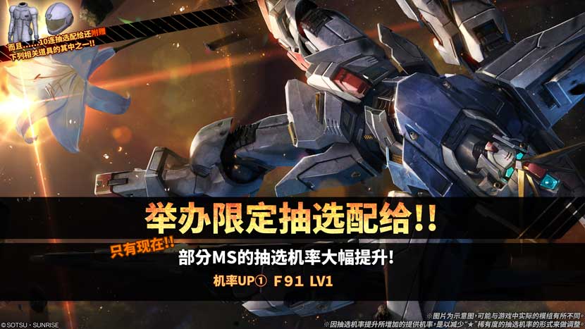 - 2025年11月20日(周四)14:00<JST> 起,将举办部分MS抽中机率提升的限定抽选配给活动。