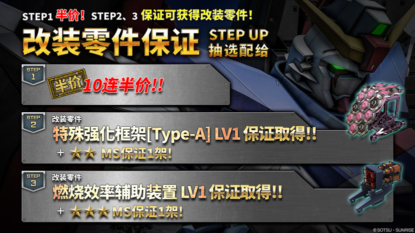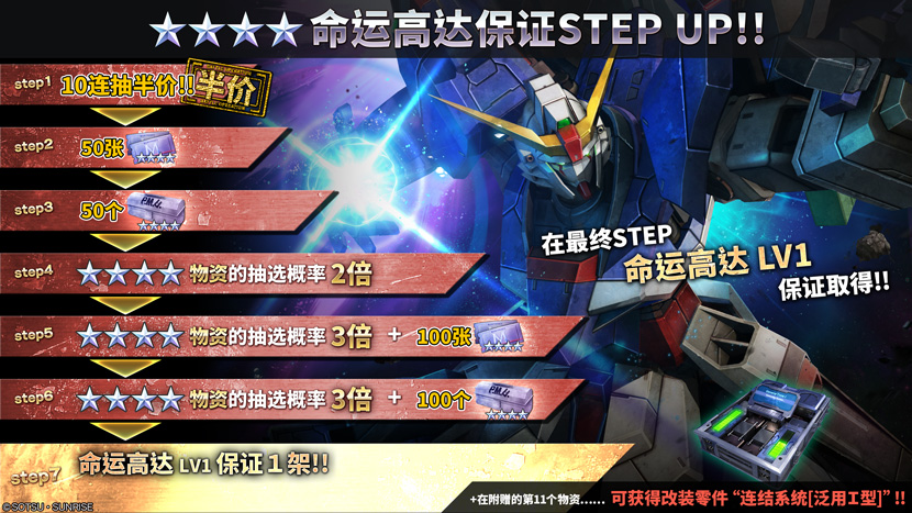 以及可获得适用于命运高达改装零件的STEP UP抽选配给。 - ◎命运高达保证STEP UP抽选配给