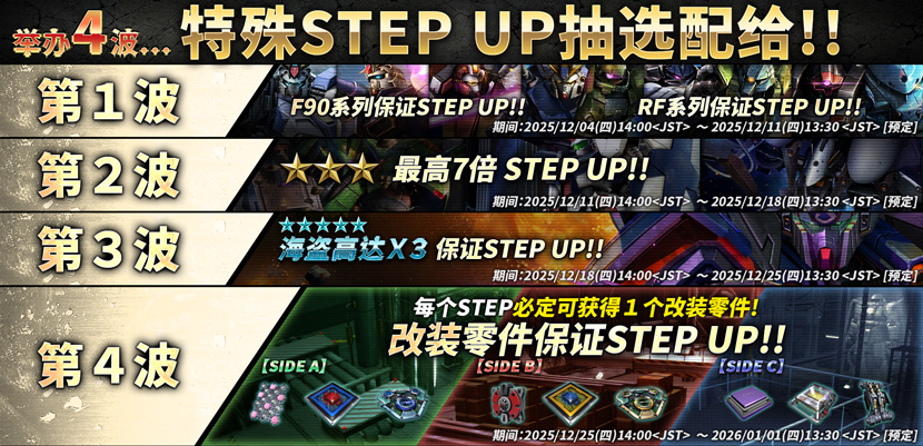 活动期间,将举办第1波~第4波特别STEP UP抽选配给。 -