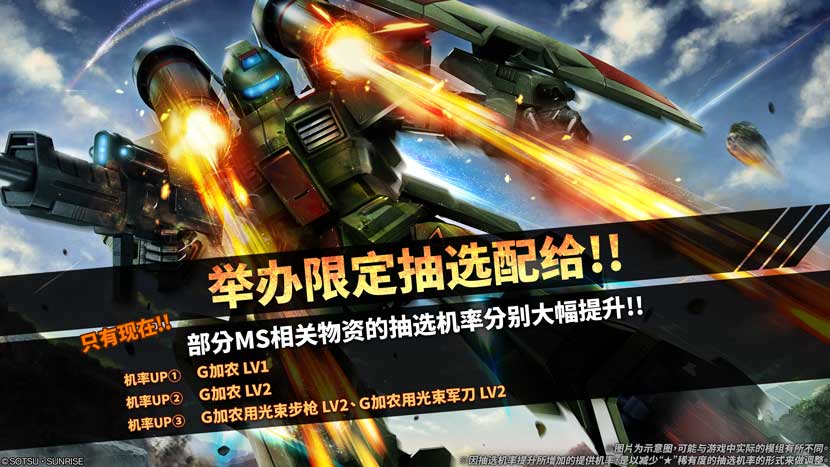 - 限定抽选配给将会针对目标机体各LV,主武装等提高各自的抽选机率。