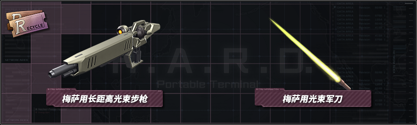 此外,过去已追加至回收窗口的「梅萨用长距离光束步枪 LV2」与「梅萨用光束军刀 LV2」保证会陈列于回收窗口。
