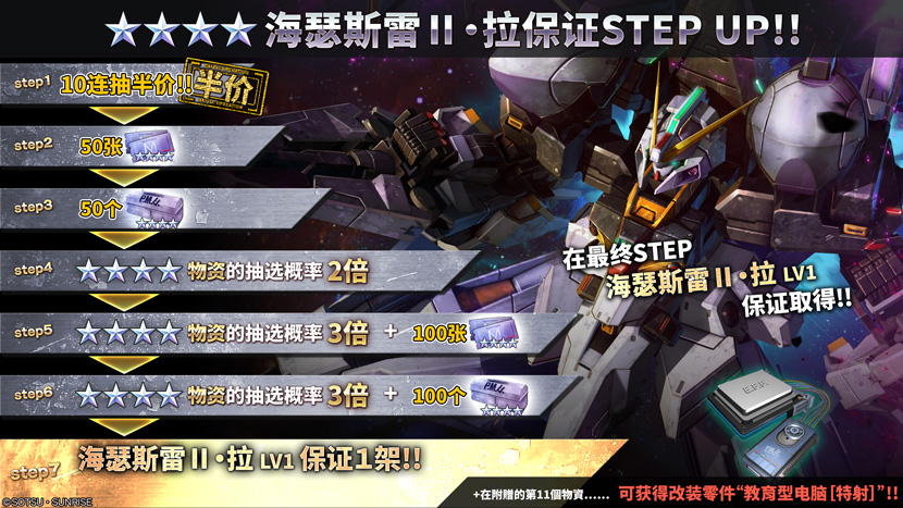 - ・STEP6(代币30枚):★★★★物资的抽选机率3倍!+ 保证获得改装套件[★★★★]100个!