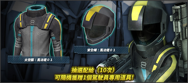 - ■限定抽選配給(10次)可獲附贈駕駛員專用道具!