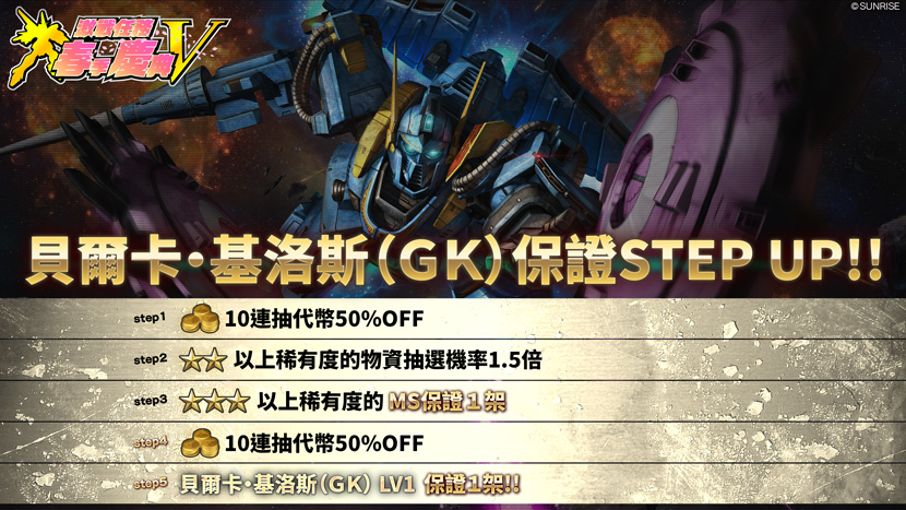 - ・STEP3(代幣30枚):★★★以上的MS保證1架!