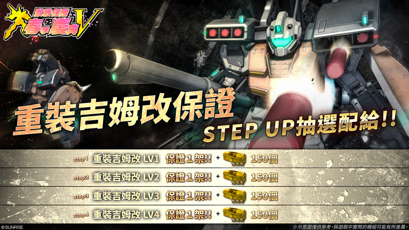 - ・STEP4(代幣30枚):重裝吉姆改 LV4 保證1架!+附贈改裝套件[★★★]150個!