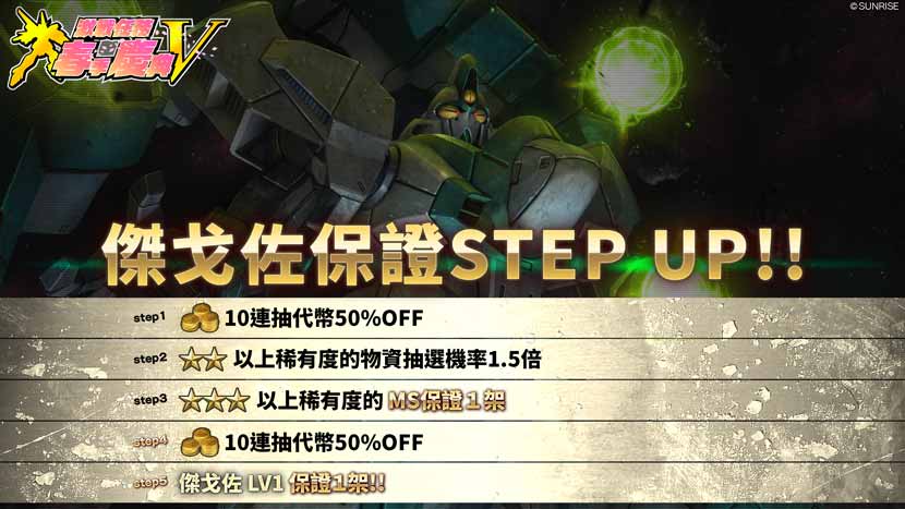 - ・STEP5(代幣30枚):傑戈佐 LV1保證1架!
