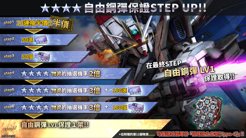 - 2026年4月30日(週四)起,將舉辦保證獲得神威鋼彈的STEP UP抽選配給。