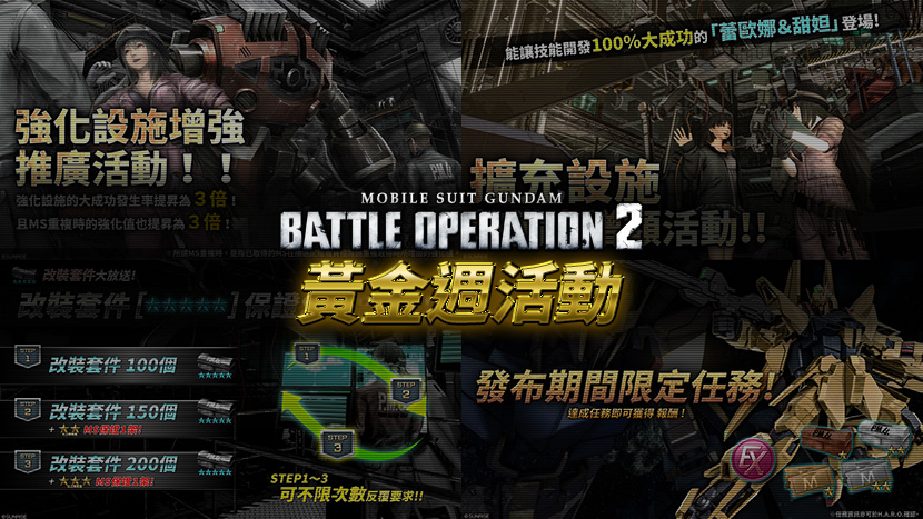 不知各位駕駛員在黃金週有無安排什麼節目呢?我個人是打算一邊玩激戰任務,一邊組裝鋼彈模型。 - 再來換個話題,前些天公開的激戰任務情報局相關公告是否都看過了呢?