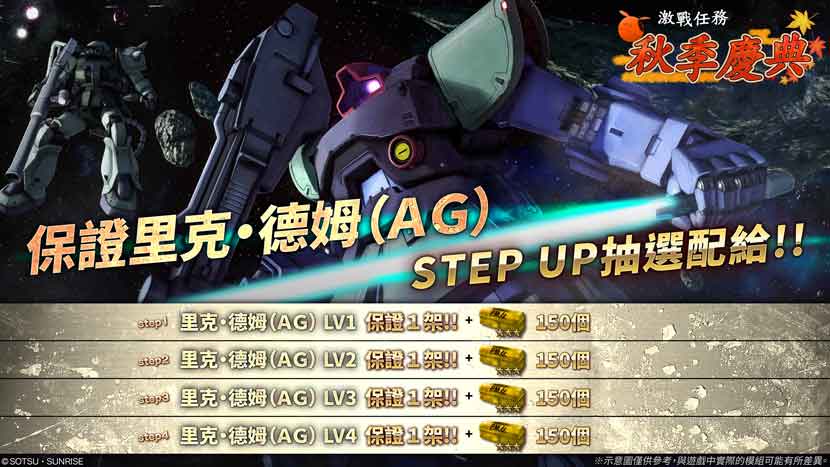 - ・STEP4(代幣30枚):里克・德姆(AG)LV4 保證1架!+附贈改裝套件[★★★]150個!