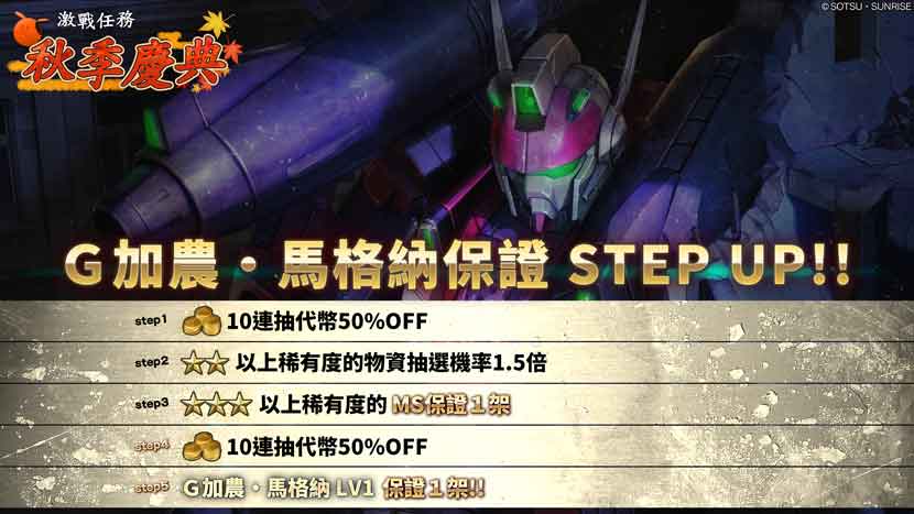 - ・STEP5(代幣30枚):G加農・馬格納LV1保證1架!