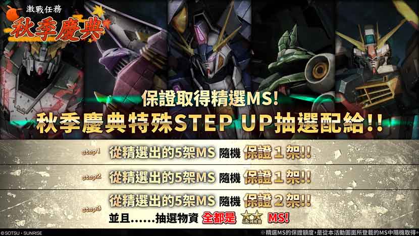 - 2025年10月9日(週四)起,將舉辦【激戰任務秋季慶典】特殊STEP UP抽選配給 。