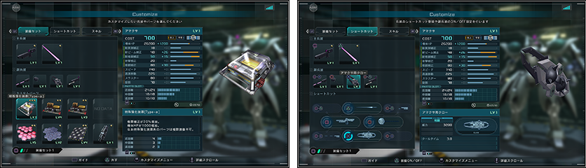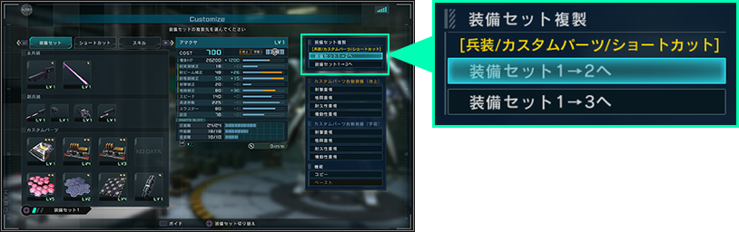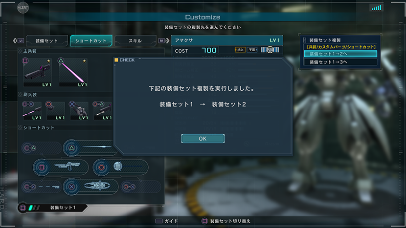 改良後可複製的也包含武裝與快捷鍵。 - ※機體性能為開發中的狀態。