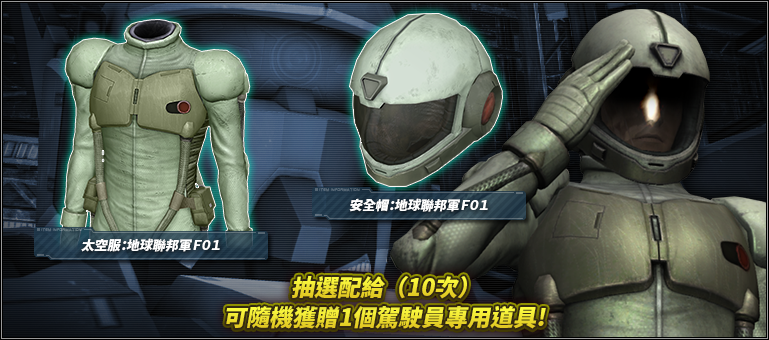 - ※期間內只要進行抽選配給(10次)就會自動進行第11次的抽選配給,就可隨機獲得駕駛員專用道具1個。
