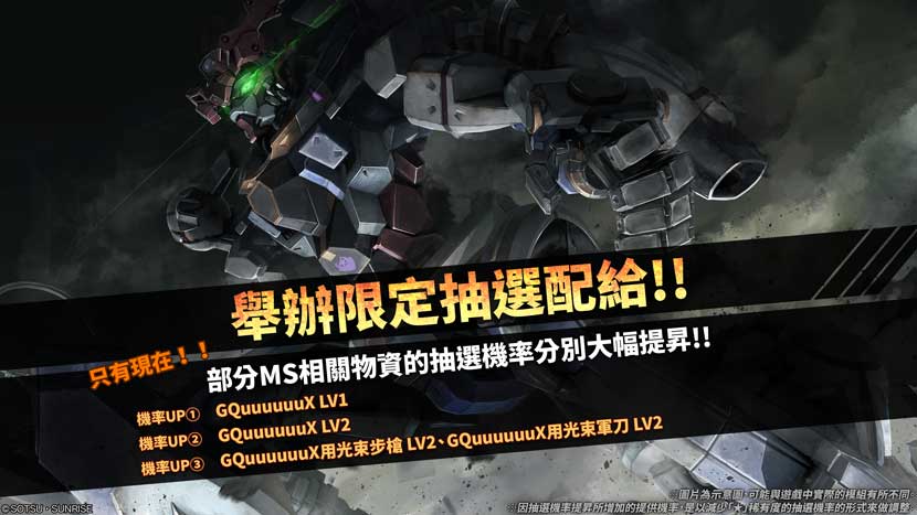 舉辦『限定抽選配給!!GQuuuuuuX』公告