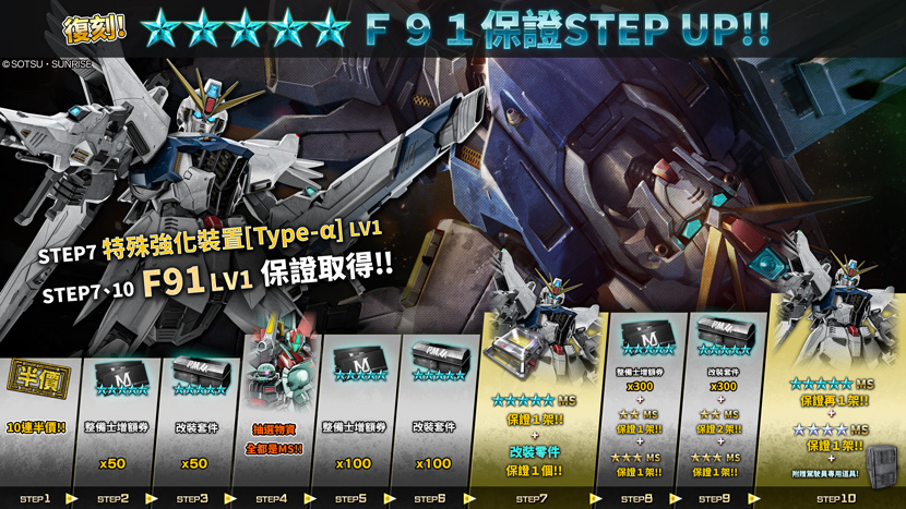 - ・STEP9(代幣30枚):★★MS保證2架&★★★MS保證1架!