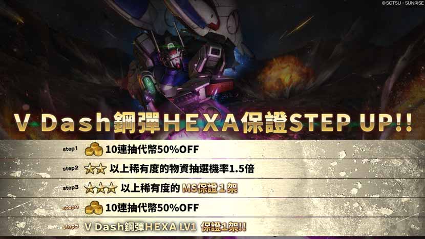 舉辦 V Dash鋼彈HEXA 保證STEP UP抽選配給 公告