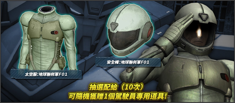 - ※期間內只要進行抽選配給(10次)就會自動進行第11次的抽選配給,就可隨機獲得駕駛員專用道具1個。