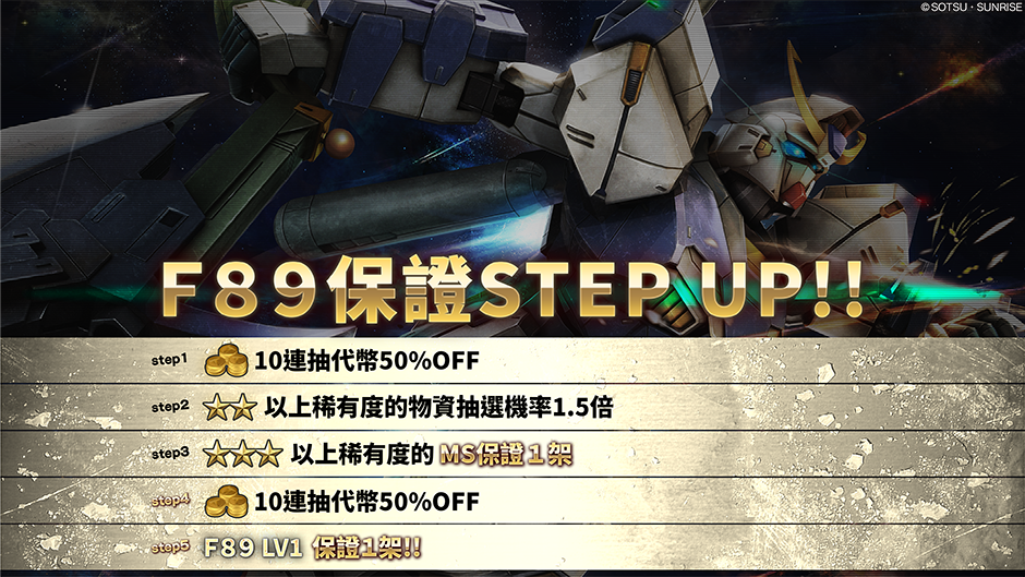 - ・STEP5(30枚代幣):F89 LV1 保證1架!!