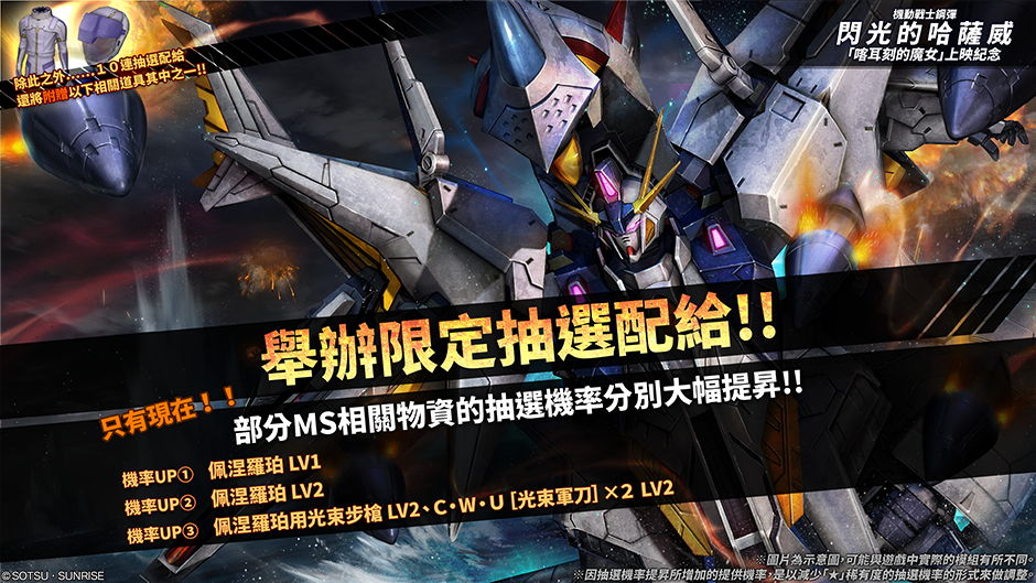 上圖新MS已更新至遊戲中,新抽選配給一覽請見下方列表。